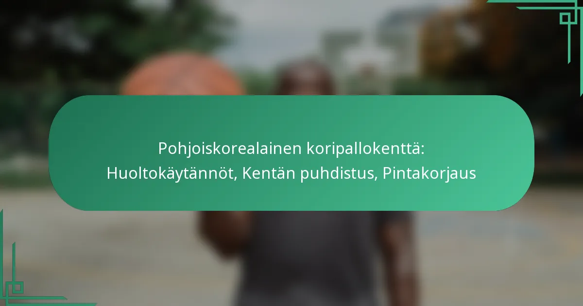Koripallokenttien ylläpito Pohjois-Koreassa sisältää useita keskeisiä käytäntöjä, jotka varmistavat pelipinnan turvallisuuden ja toimivuuden. Säännöllinen huolto on välttämätöntä kentän eliniän pidentämiseksi ja pelaajien suorituskyvyn parantamiseksi.