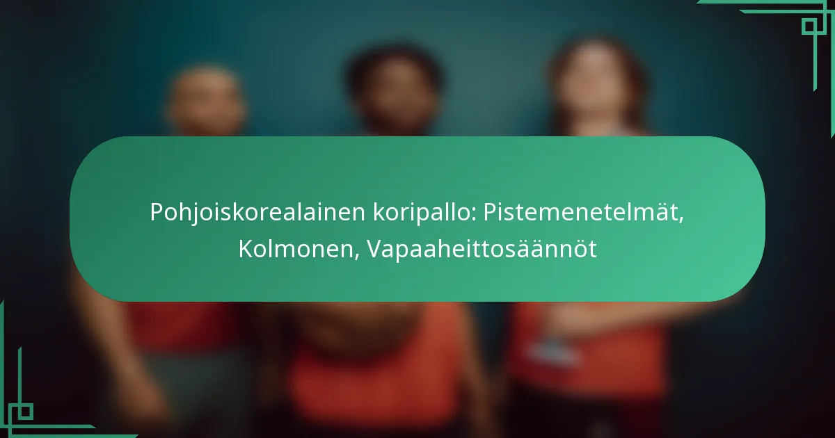 Pohjoiskorealaiset koripallon pisteytysmenetelmät noudattavat pääasiassa perinteisiä koripallon sääntöjä, mutta niissä on myös ainutlaatuisia elementtejä, jotka heijastavat maan erityistä lähestymistapaa lajiin. Pisteitä saavutetaan kenttämaaleilla, kolmonenheitolla ja vapaaheitoilla, ja pisteiden jakaminen voi poiketa kansainvälisistä standardeista. Kolmonenviiva toimii tärkeänä pisteytysalueena, joka vaikuttaa pelistrategiaan ja pelaajien sijoittumiseen, kun taas vapaaheittojen säännöissä on erityisiä suoritussääntöjä ja rangaistuksia rikkomuksista.