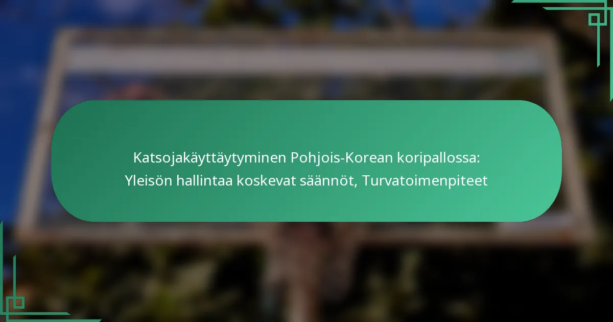 Pohjois-Korean koripallo-otteluissa väkijoukkojen hallinta ja turvallisuustoimenpiteet muokkaavat merkittävästi katsojakokemusta, tasapainottaen nautintoa ja noudattamista. Nämä protokollat on suunniteltu ylläpitämään järjestystä ja varmistamaan turvallisuus, mutta ne voivat myös rajoittaa spontaania fanien osallistumista ja ilmaisua.